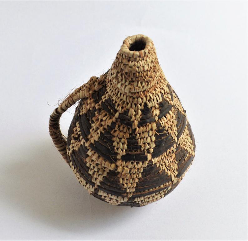 Antique Artisan work from Shalateen Egypt. The model is made using Doum tree palm leaves and natural goat leather. Design is from the heritage of Shalateen annd jebel Elba.